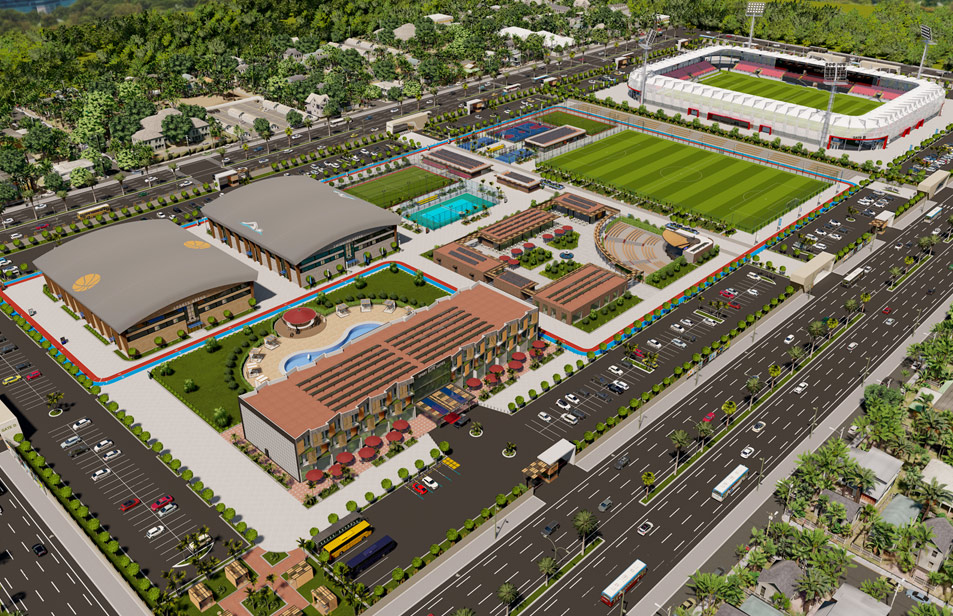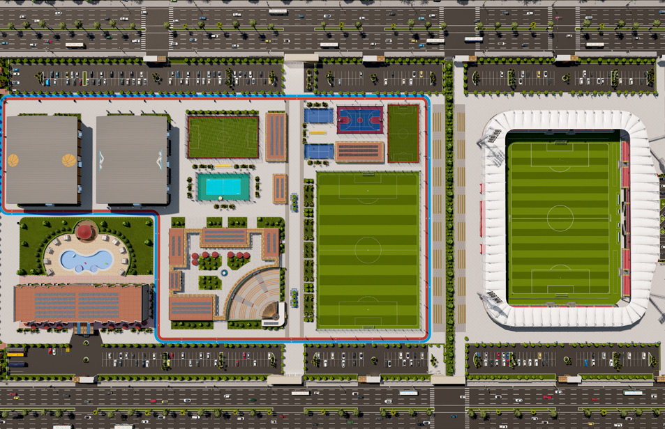 Nuestro proyecto de Ciudad Deportiva Olímpica, que incluye instalaciones deportivas que cumplen con los estándares olímpicos, ofrece 21 instalaciones deportivas interiores y exteriores.