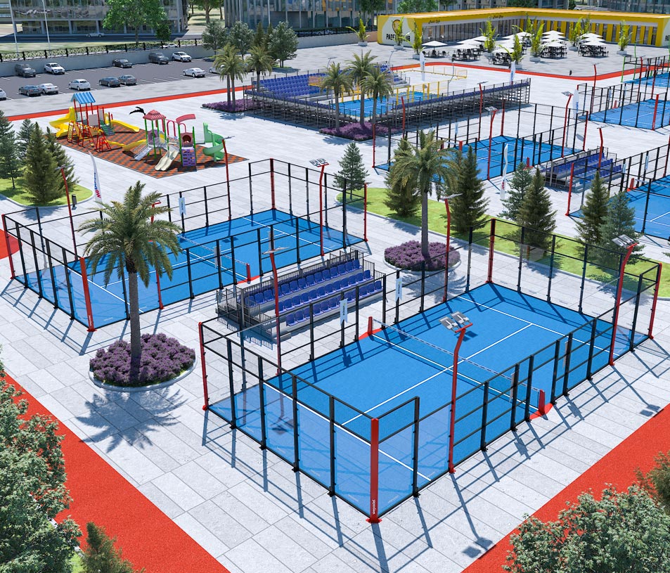 - Se ofrecen pistas de pádel abiertas e interiores diseñadas según estándares internacionales.