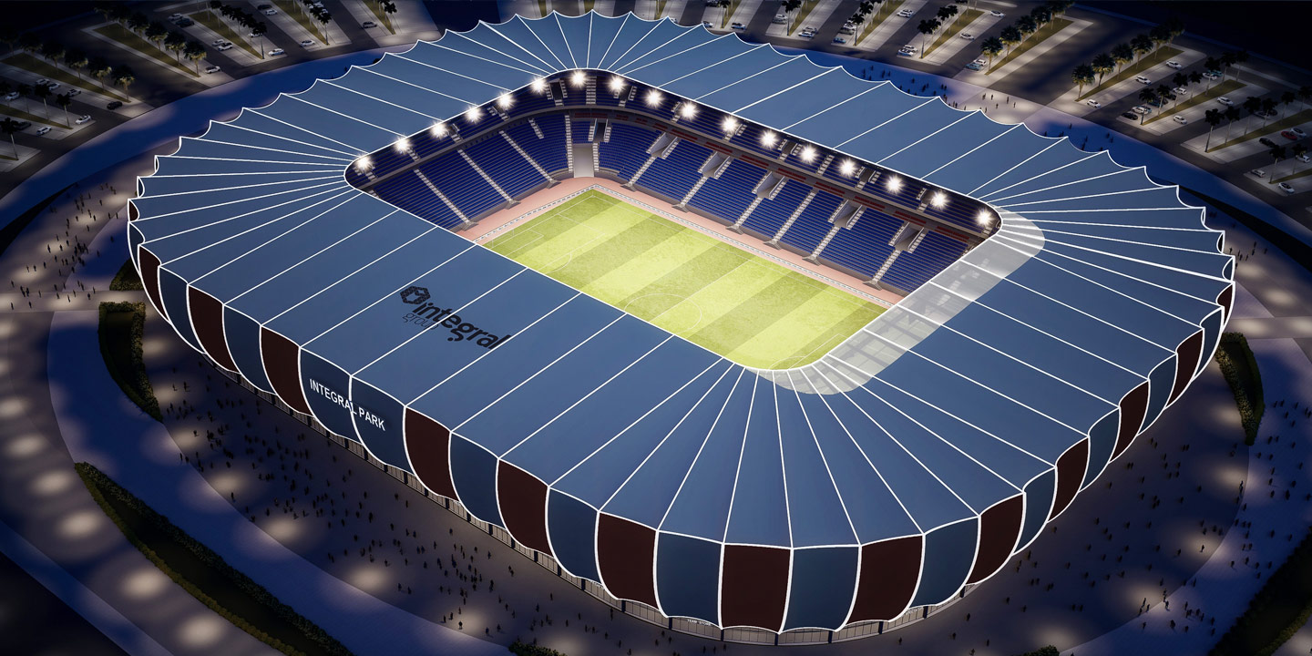 Nuestro proyecto de estadio para 25.000 asientos está siendo construido con una tribuna de acero galvanizado de alta resistencia y un sistema de techo diseñado para soportar cargas calculadas de nieve, lluvia y los efectos del viento. El material decorativo de césped artificial y la mano de obra en el área entre el campo de fútbol y la tribuna ofrecen un espacio profesional tanto para los espectadores como para los jugadores.