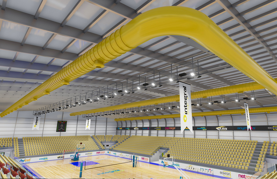 Integral Spor ofrece pabellones deportivos cubiertos no solo como campos de juego, sino también como instalaciones llave en mano con todas las unidades de apoyo, tales como vestuarios, duchas, salas para árbitros, oficinas administrativas, gradas, cafetería, marcador y áreas de almacenamiento. Los pabellones cuentan con equipamiento técnico para albergar competiciones oficiales.