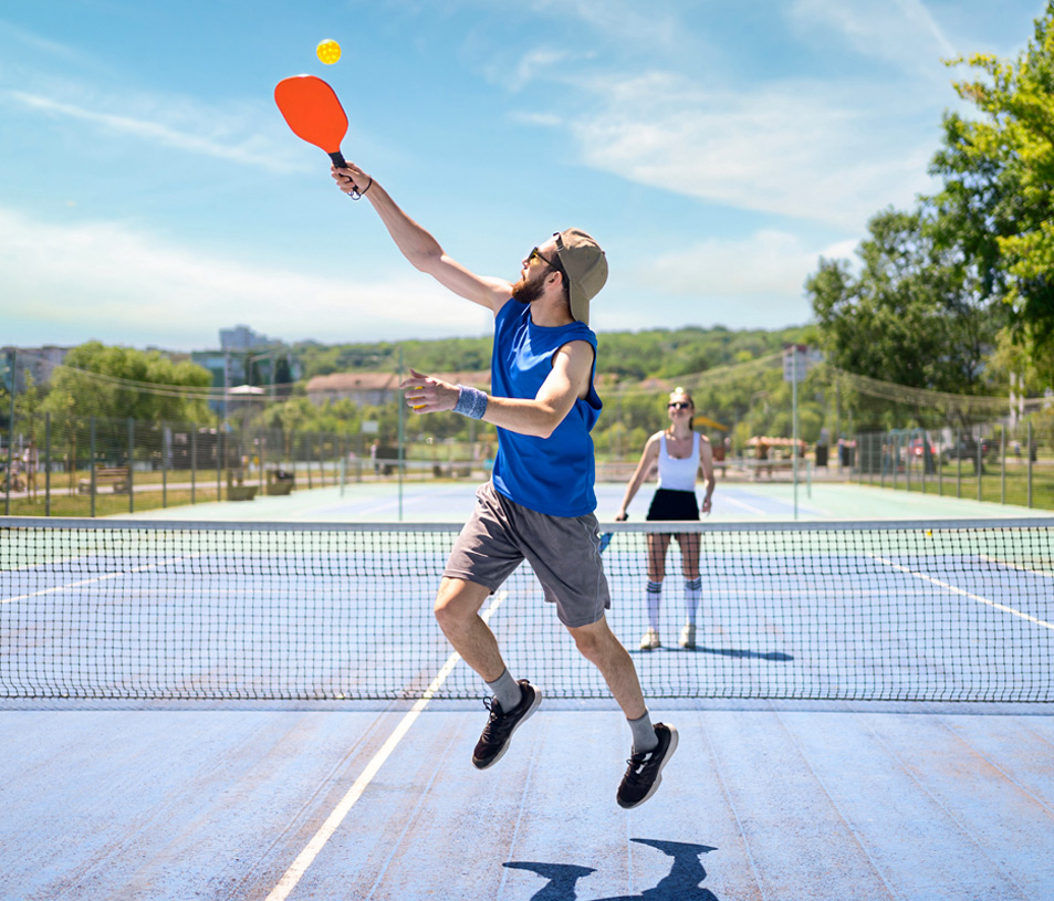 El pickleball, que se asemeja fundamentalmente al tenis y al bádminton, tiene dimensiones mucho más pequeñas que las pistas de tenis. Muchas canchas de pickleball cuentan con características fácilmente ajustables. Se pueden colocar en canchas de tenis utilizando equipos de marcado de líneas, incluyendo líneas de cancha y redes independientes.