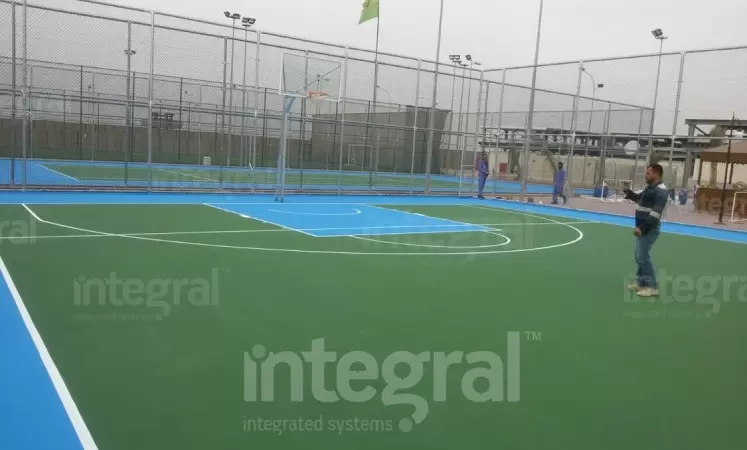 Integral Spor brinda servicio con estándares internacionales que sirve en todo el mundo. La cancha de baloncesto con suelo acrílico se puso al servicio de los aficionados al deporte en Basora, Irak.